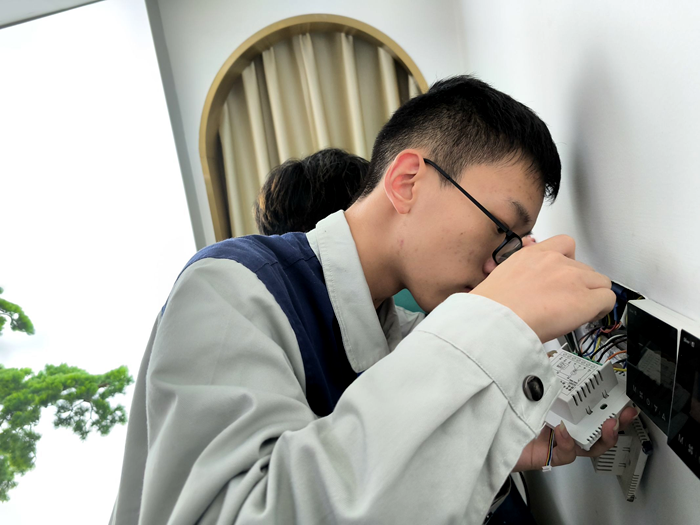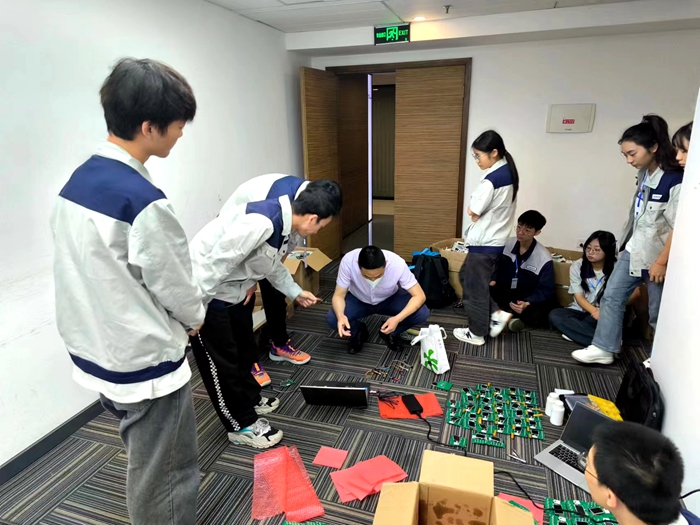 本次现场教学依托企业真实项目——智能空调控制装置装配与调试项目,教学载体为自制产品“智能空调控制装置”。在实践前一周,王继炯老师发布相关任务,创新实验班学生在企业技术人员指导下,制作完成了安装需要用到的800个智能空调控制板与供电装置。通过各小组严格的产品管控以及产品质检,在每一道工序中做到“只出精品,不出次品”的要求,让同学们在学习的过程中能够做到自检自查,总结反思。
