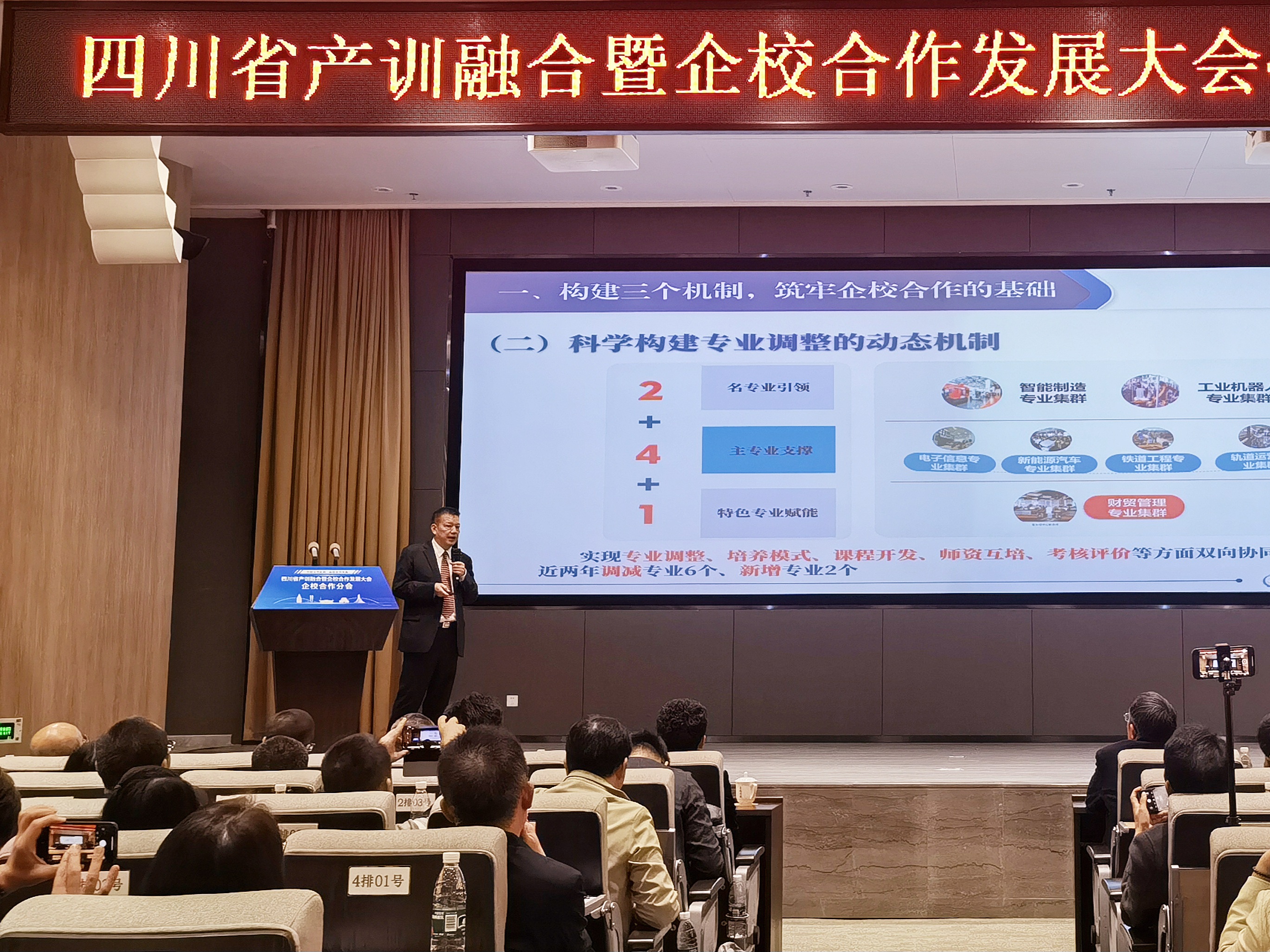 学校党委书记王涛受邀出席四川省产训融合暨企校合作发展大会并作主旨报告